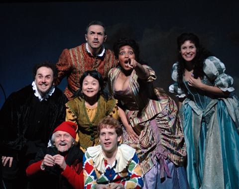 (Pantalone), Julyana Soelistyo (Armanda) and Jeremy Webb (Francesco);